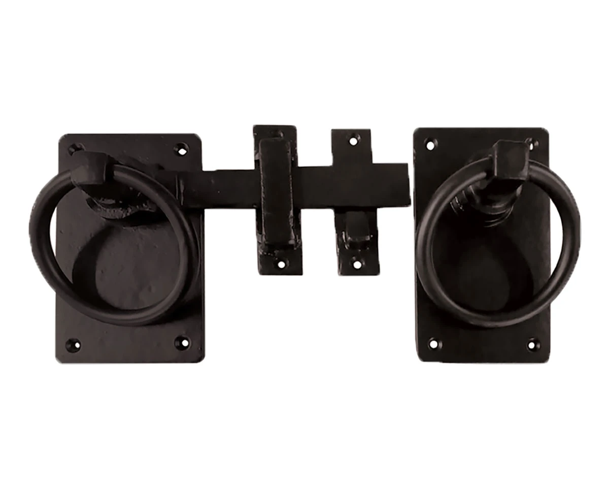 - Set Includes: 2 rings (operable from both sides of the gate), arm keeper, strike plate, spindle, and 1-1/4″ mounting screws.