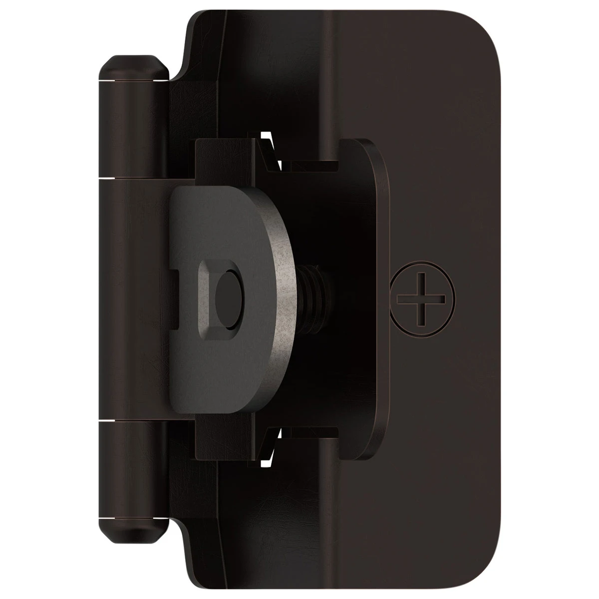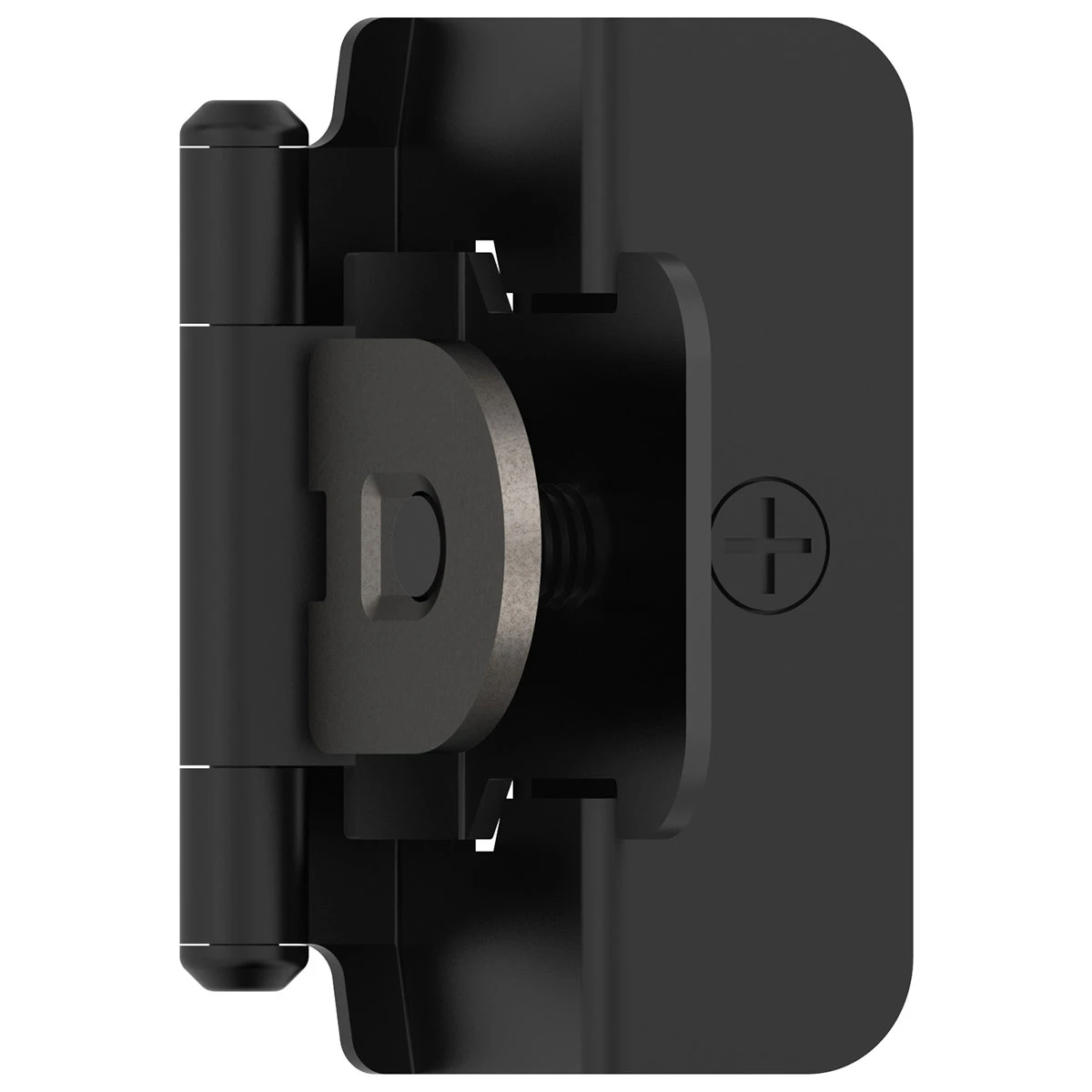 - Double demountable cabinet hinge slides into pre-routed slots and features full 3-way adjustability