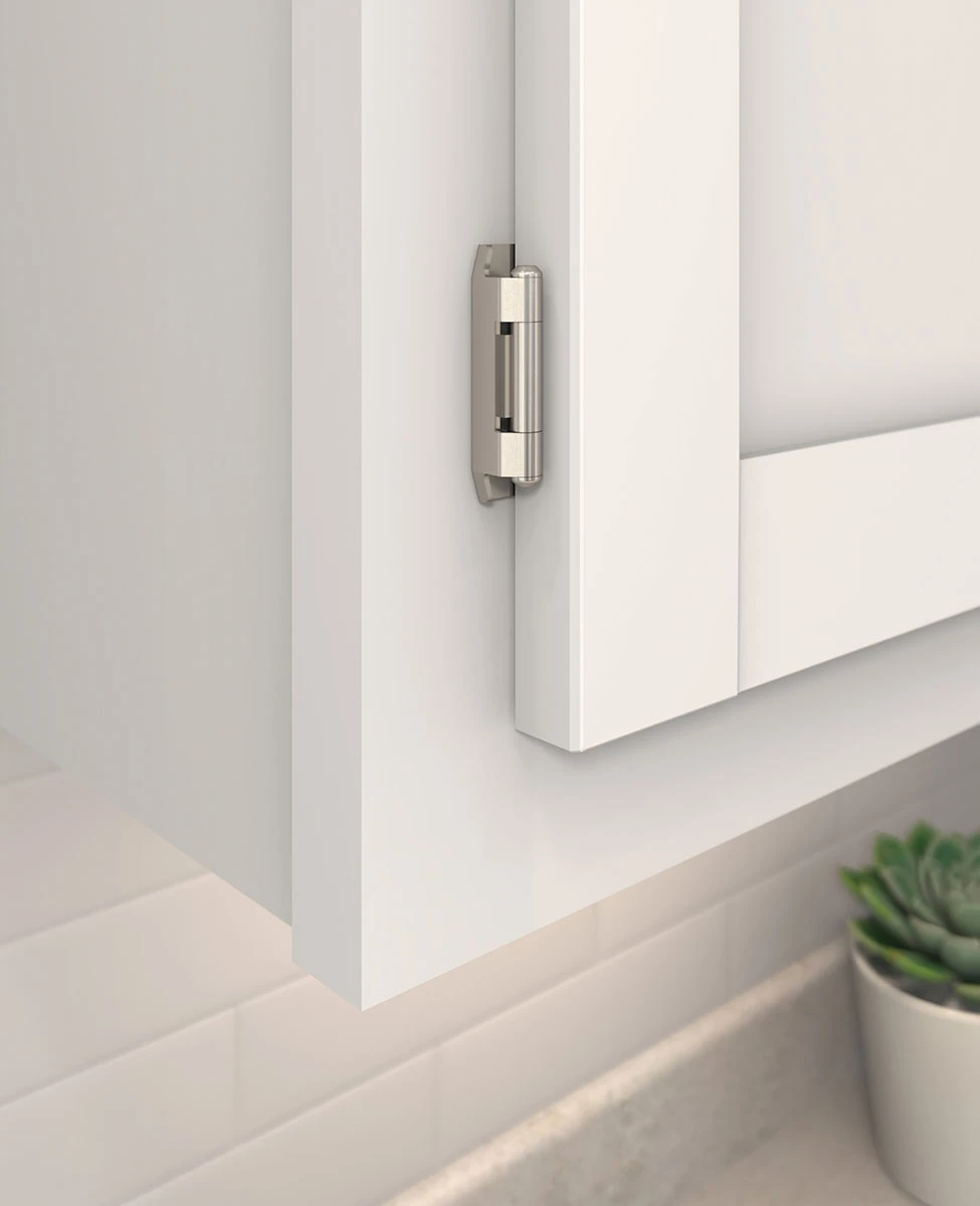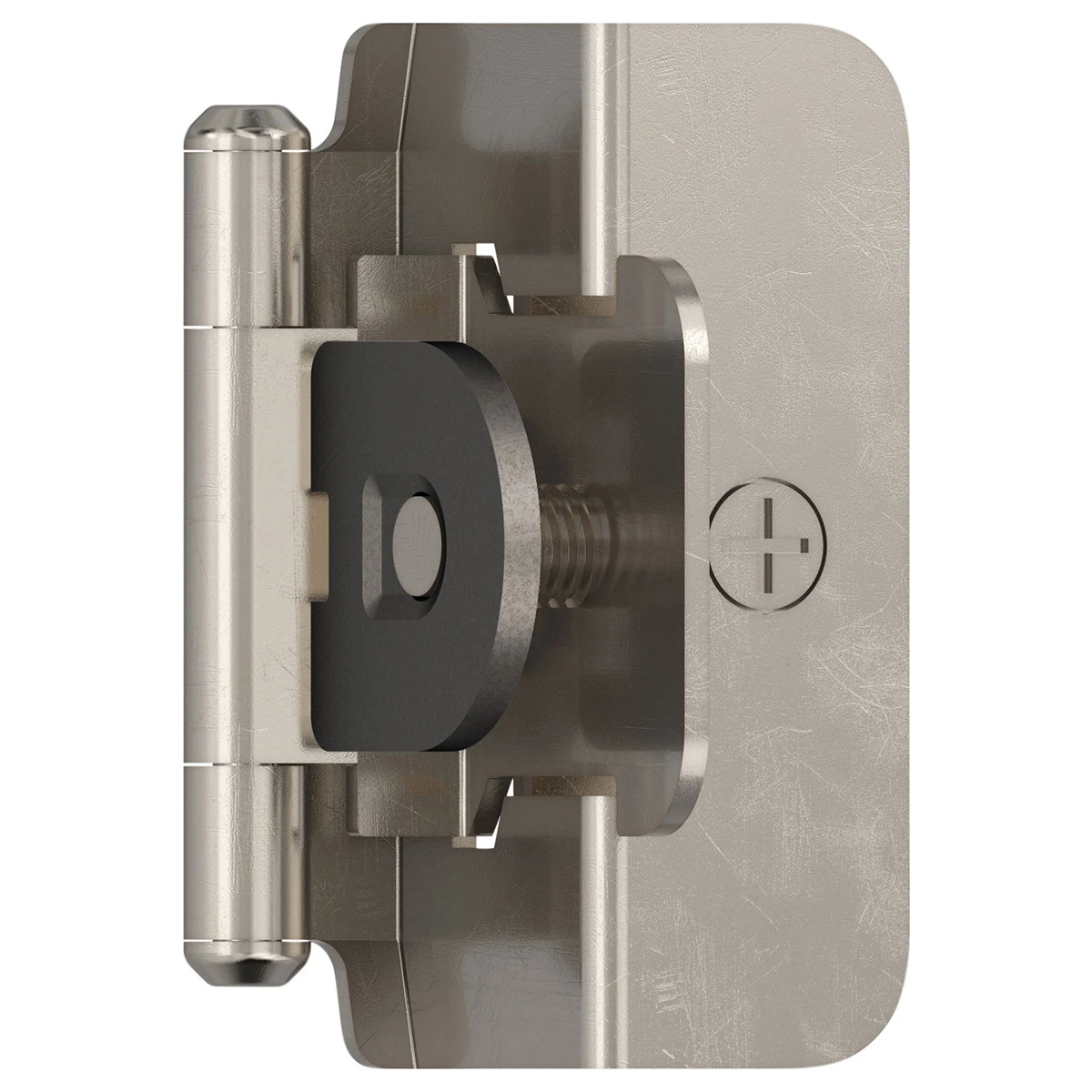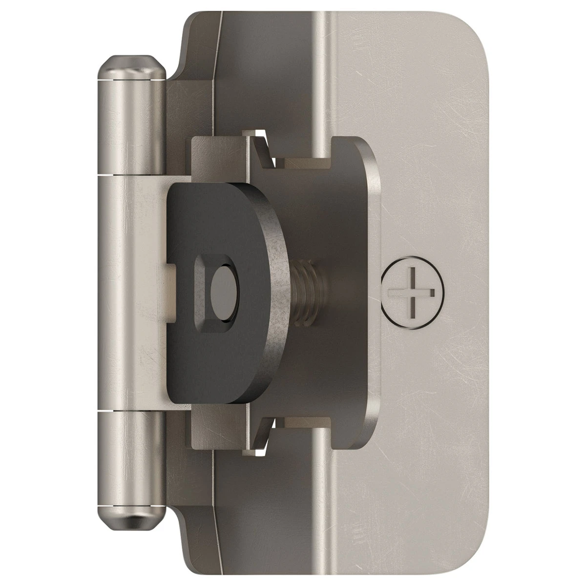 The Amerock BPR8704G10 1/2 in (13 mm) Overlay Double Demountable Hinge is finished in Satin Nickel. Enduring and versatile, satin nickel marries delicate brushing with a subtle warm hue to produce an approachable, classic presentation that resonates across all design styles.