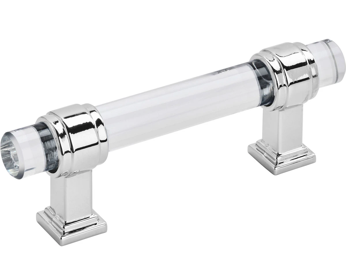 Belwith-Keeler Chautauqua 3-3/4″ (96mm) Center-to-Center Cabinet Pull (Glass With Polished Nickel)