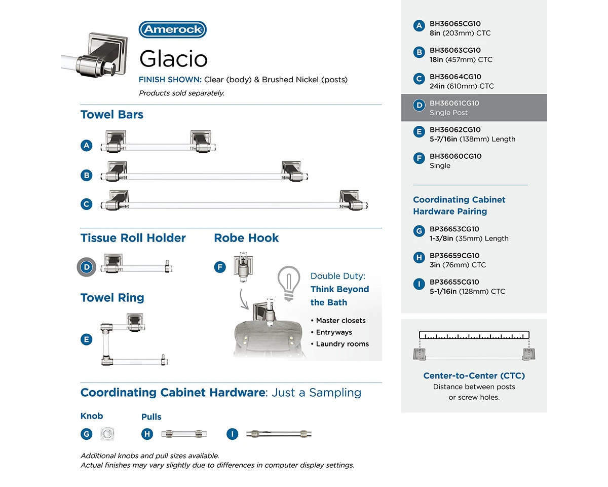 - Pair with matching cabinet knobs and pulls from the Amerock Glacio collection for a effortless designer hardware look