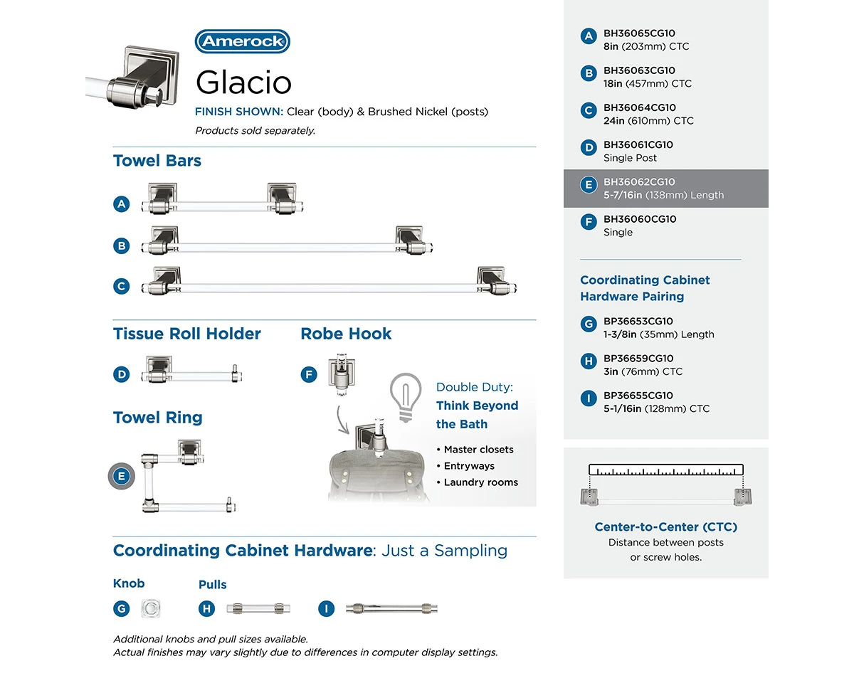 - Pair with matching cabinet knobs and pulls from the Amerock Glacio collection for a effortless designer hardware look