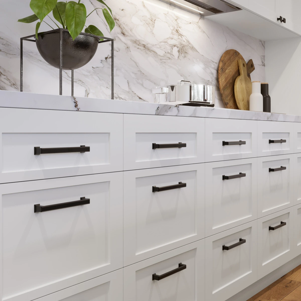 • Matching appliance pulls available for oversized drawers, tall pantry doors and appliances