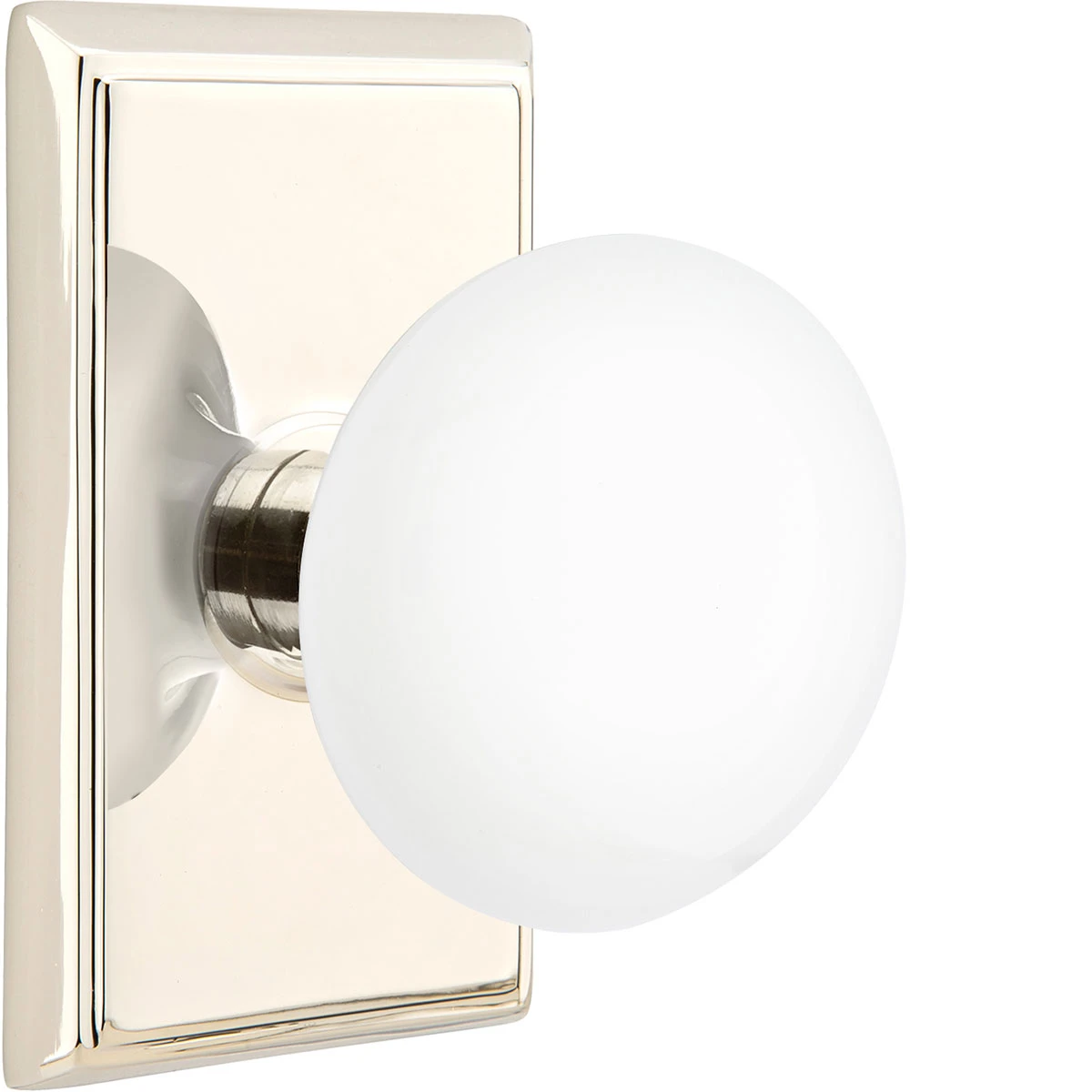 Emtek Ice White Porcelain Door Knobset and Rosette Features: