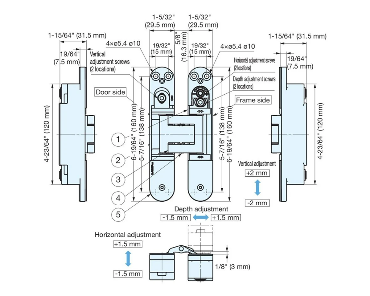 - Hinge leaves separate for easy installation and feature a temporary hold function making it easier to hang doors.