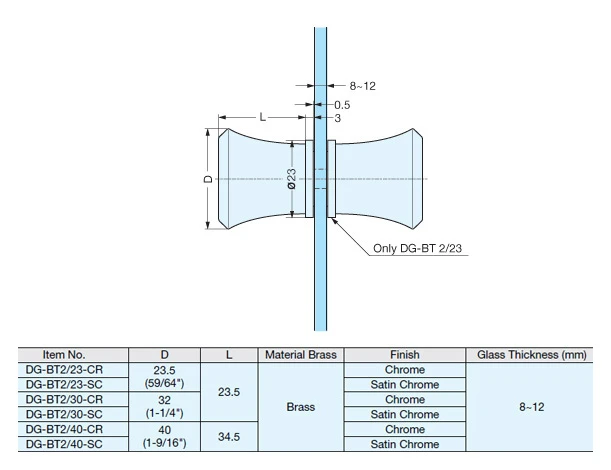 - For glass thickness 5/16in.(8mm) to 1/2in.(12mm)