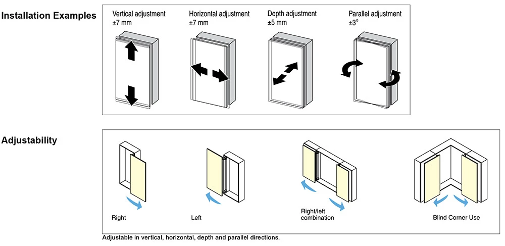 - 4-Way Adjustable: Vertical, horizontal, depth and parallel adjustment.